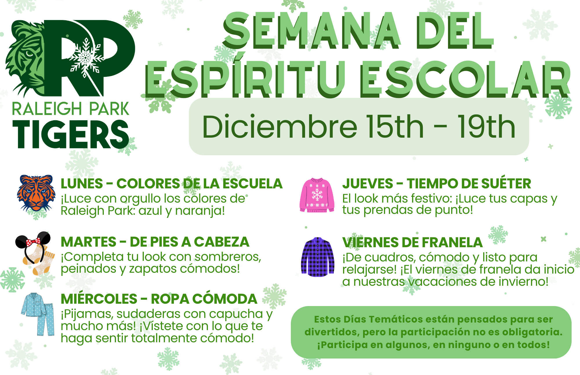 December 15 // Monday - School Colors: Rock your Raleigh Park colors - blue and orange!
